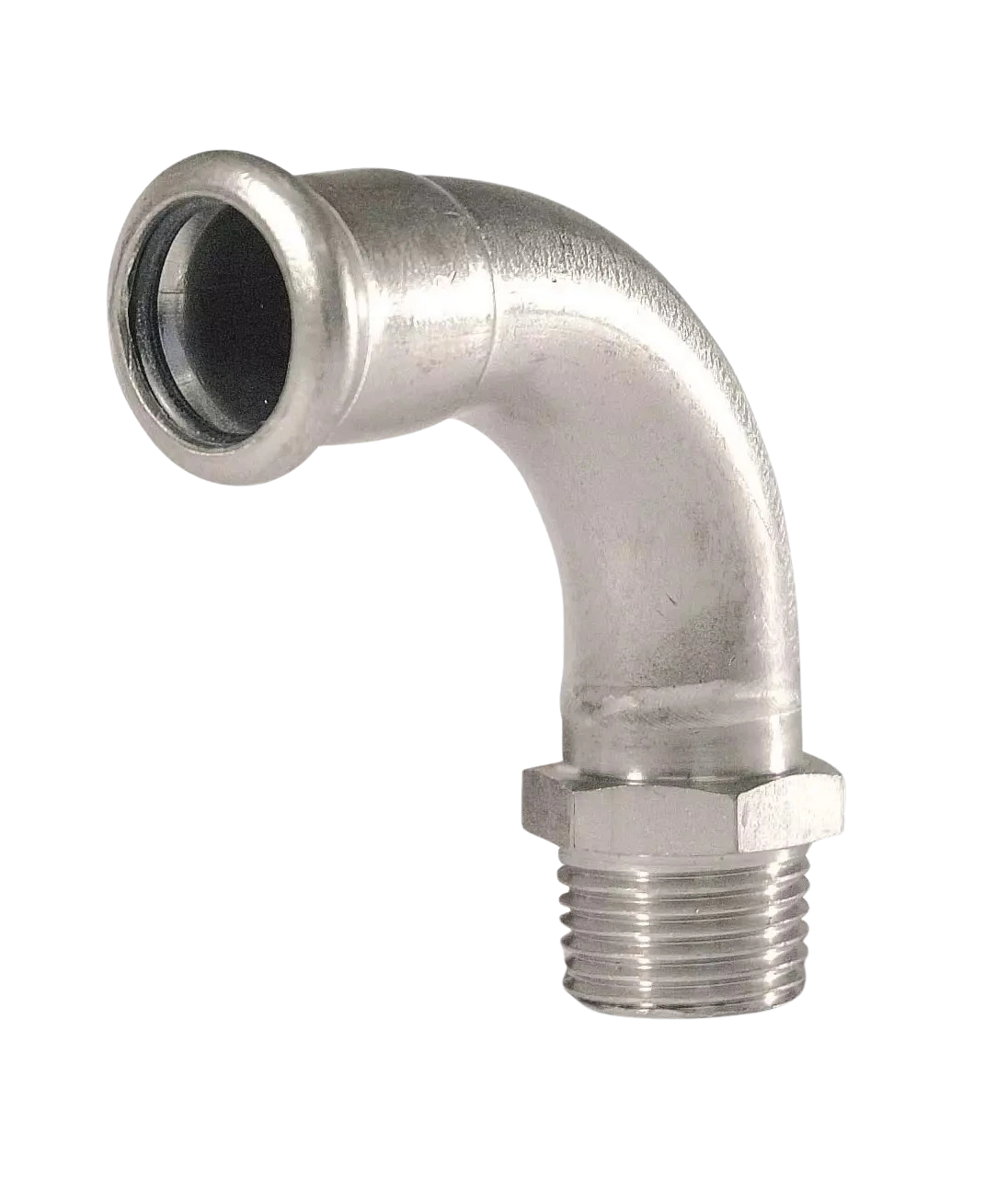 Codo curvo rosca macho de acero inoxidable para conducción de agua fría o caliente instalación.