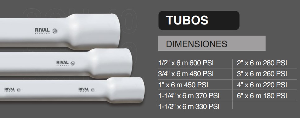 | Medidas Tubería | 1 1/2", 2", 3", 4", 6" |